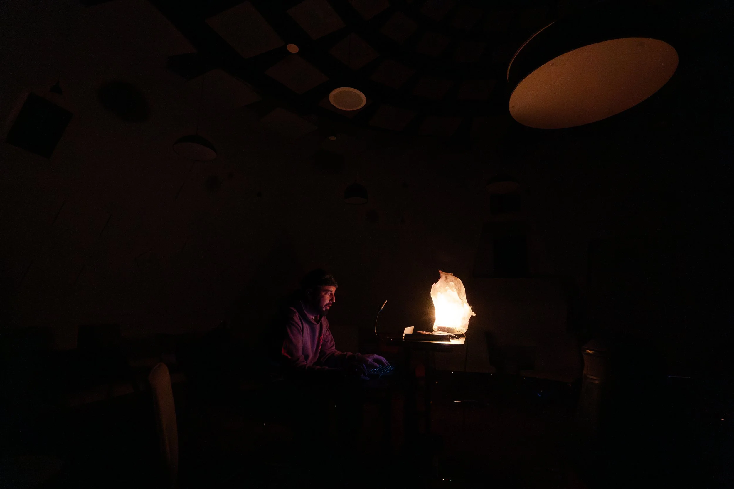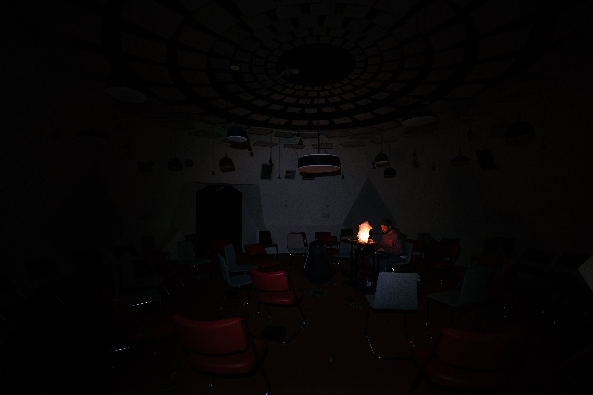 Vocals, Live Spatialization of Sound, Sub Frequency Oscillator, Live Sound generation and performance with 3 instruments designed for the show.