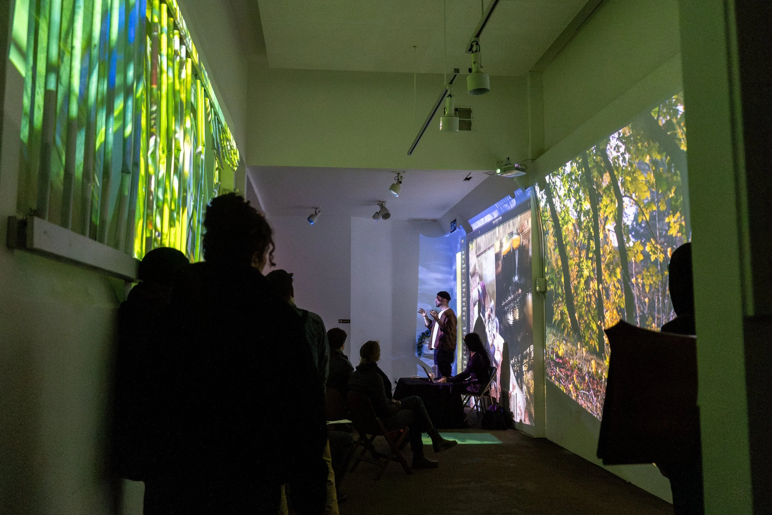 Central to the piece is a collection of whispers recorded during a series of community visioning events where participants were asked to share their visions of a new world.